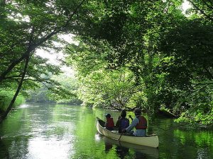 The Kushiro River is a beautiful stretch of water that flows from Lake Kussharo to the Pacific Ocean. The upper reaches of the river are shallow and gentle, making them ideal for canoeing. There are no fast rapids or whitewater stretches; traversing these waters in a canoe is like taking a relaxing woodland walk.